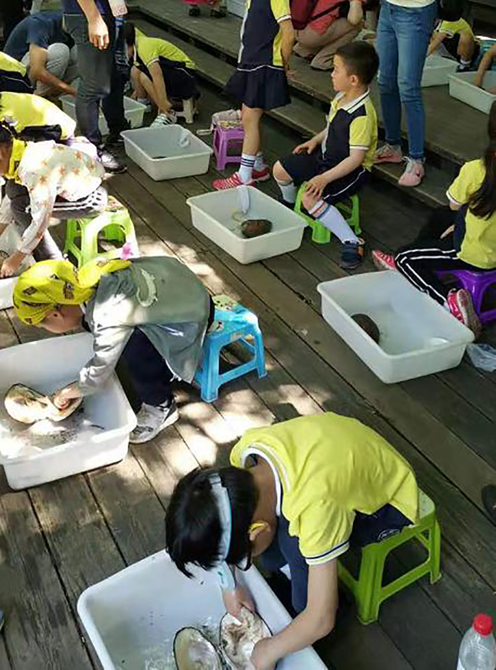 ? ? ?為了讓學生、學者們了解到更深入、更系統、更全面的內容,研學基地特地配備了三名專業講解員,分別負責“水生態系統介紹”、“水資源保護”、“珍珠養殖和微生物擴培“三門主要課程的講解。主要通過現場展示、實際操作、PPT講解、展板展示等方式,加深對健康的生態系統的理解,喚醒大家保護水資源的意識,同時能初步了解珍珠的形成過程與珍珠蚌養殖過程對環境的凈化效果。
